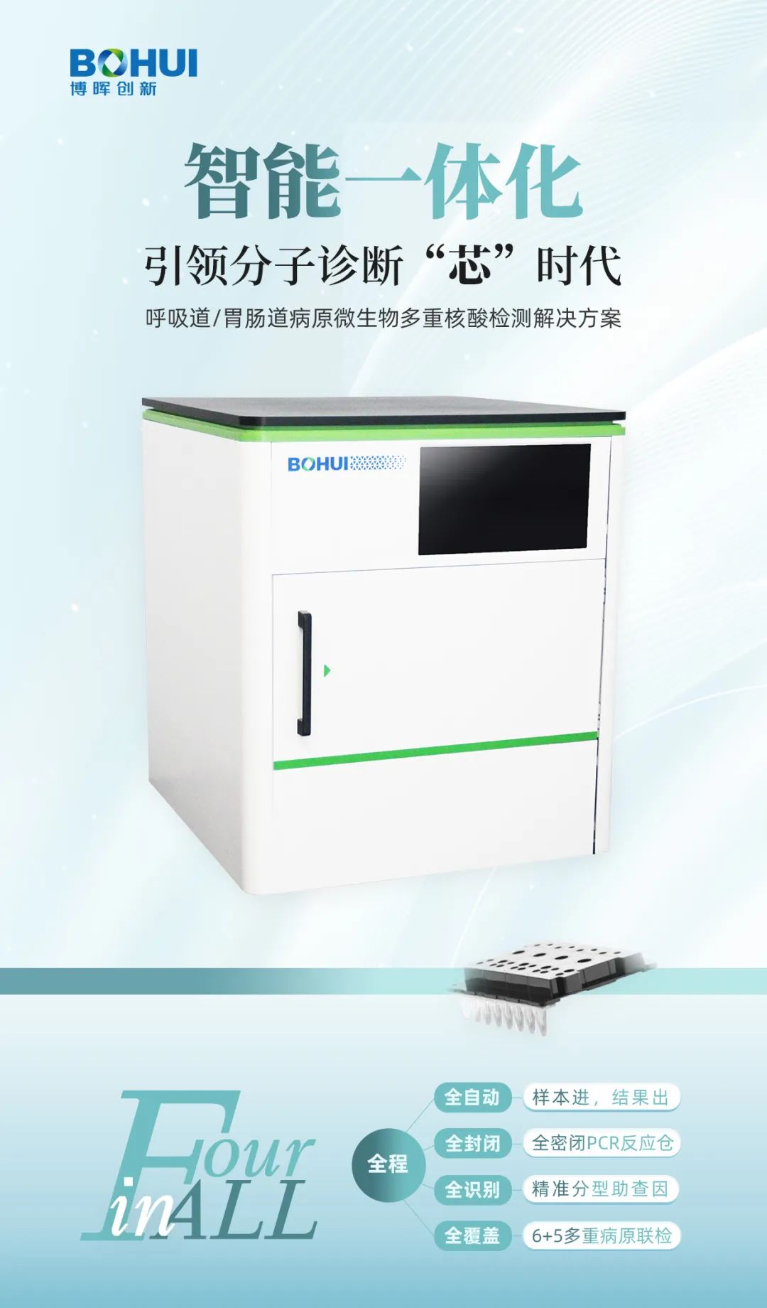 博暉創(chuàng)新洞悉市場(chǎng)需求,借助微流控檢測(cè)平臺(tái)技術(shù)打造全程全自動(dòng)多病原核酸檢測(cè)系統(tǒng),覆蓋常見(jiàn)呼吸道病原微生物及腹瀉相關(guān)病原微生物,打造甲/乙流,肺炎支原體,呼吸道合胞病毒,呼吸道腺病毒,百日咳鮑特菌多種常見(jiàn)呼吸道病原微生物高效聯(lián)檢解決方案,助力百日咳樣綜合征鑒別診斷。